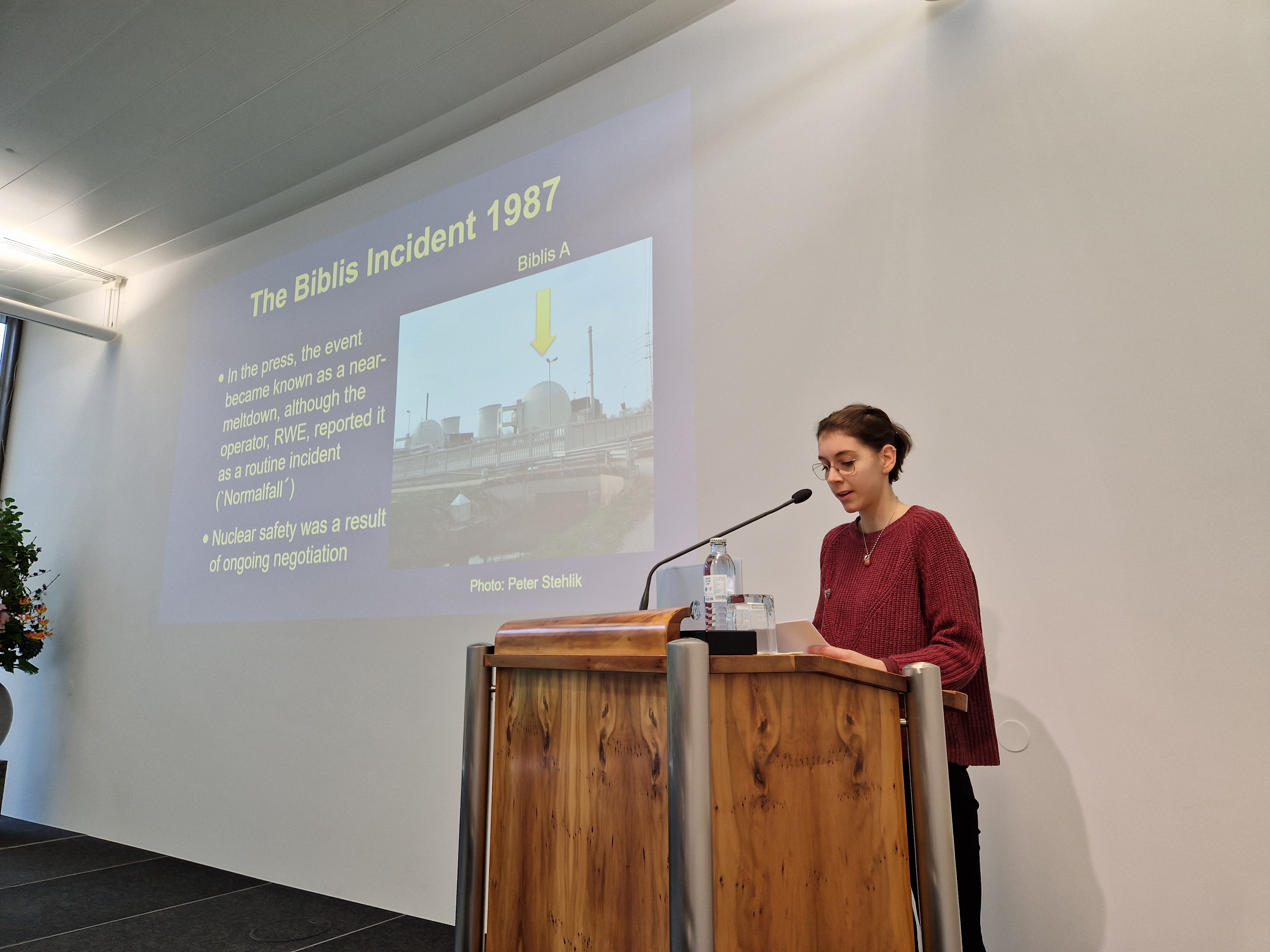 Wir vermelden in dieser Rubrik nicht jeden Konferenzvortrag, den ein Mitglied unseres Lehrstuhlteams irgendwo auf diesem Planeten hält. Aber manche Vorträge müssen einfach einer breiteren Öffentlichkeit bekannt gemacht werden. Am 21. November sprach Marie Eckardt, Hilfskraft am Lehrstuhl und Masterkandidatin, gemeinsam mit Frank Uekötter auf dem Workshop "Post-Atomic Formations: Dealing with the Legacies of Nuclear Power in Science, Society, and the Environment" im Haus der Carl Friedrich von Siemens Stiftung in München. Thema des Vortrags: "Learning Curves and their Requirements: Lessons from West Germany's Nuclear Odyssey". Darin ging es um die taufrischen Ergebnisse ihrer Masterarbeit und um ihren ersten Vortrag auf einer wissenschaftlichen Konferenz. Willkommen in der Wissenschaft, Frau Eckardt!